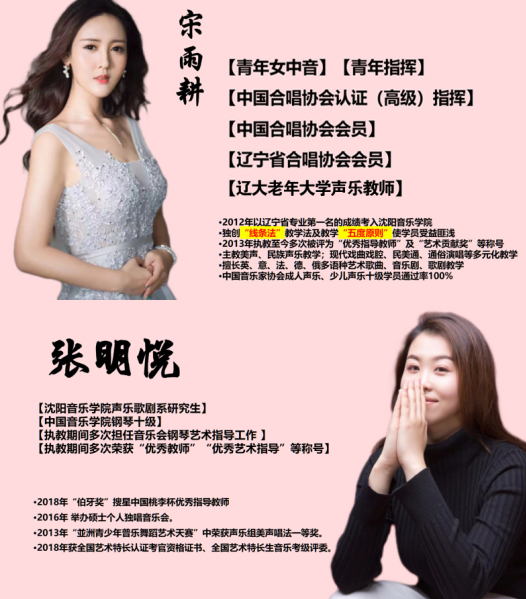 讲座简介:合唱课采用双师授课模式,指挥和钢琴弹奏同步教学,通过专业声乐训练提升学员基本合唱能力(包括:音色、音准、气息节奏等),以简谱为主,五线谱为辅,基本乐理、视唱、模唱、构唱等。