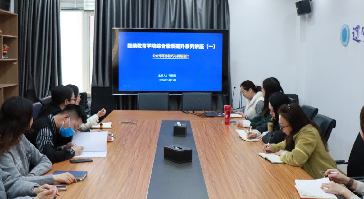 为进一步提升学院宣传队伍的专业素养与新媒体运营能力,2026年3月13日上午9点,继续教育学院在学院会议室举办综合素质提升系列讲座——公众号文案与排版设计专题培训。本次培训特邀辽宁大学国际教育中心公众号运营老师马熙芮担任主讲,学院各中心负责人及公众号运营相关老师参加了培训。